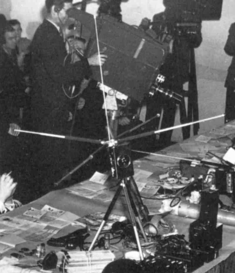 The picture below is from a portion of a picture of a Soviet press briefing in 1957, showing captured spy hardware. The item in the center is a URC-4, with a non-standard groundplane antenna for use as a beacon, and is mounted on a small tripod. In the foreground appears to be an RS-6 set.
